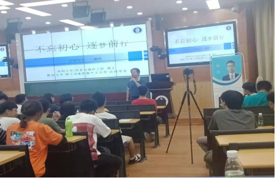 报告会上,戴明感谢母校的栽培,同时非常感谢郑泽龙书记邀请他回母校作报告,与在场的老师、学弟学妹分享了他求学、工作和生活中的点点滴滴和奋斗历程。围绕如何备战考研,戴明结合自身经历,阐述考研的重要性,下定决心考研后,如何制定考研计划、如何在考研过程中调整心态、如何在备考过程中锻炼好身体,做到劳逸结合,坚持到考研结束走出考场的那一刻等多方面进行了考研经验和方法的指导。针对如何做好老员工职业生涯规划,戴明从读大学对人生的意义,以及怎么读好大学、大学里应学习什么等方面,分享了自己在成长路上的经验。在互动环节,同学们就自己生活、学习中遇到的疑惑与戴明学长进行深入交流,现场气氛活跃热烈。