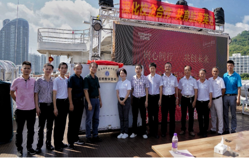6月19日上午,3044am永利集团3044noc与三亚洋海船务实业有限公司在“洋海之光”轮举行实践教学基地揭牌仪式。公司党总支书记郑泽龙、副经理孙志雄、船电专业负责人刘世杰、三亚洋海船务实业有限公司总经理傅晓梅、副总经理姚德坚、三亚市游船运输行业协会秘书长董广友、三亚港务集团有限公司工会主席蔡广明以及部分教师和员工代表出席揭牌仪式。
